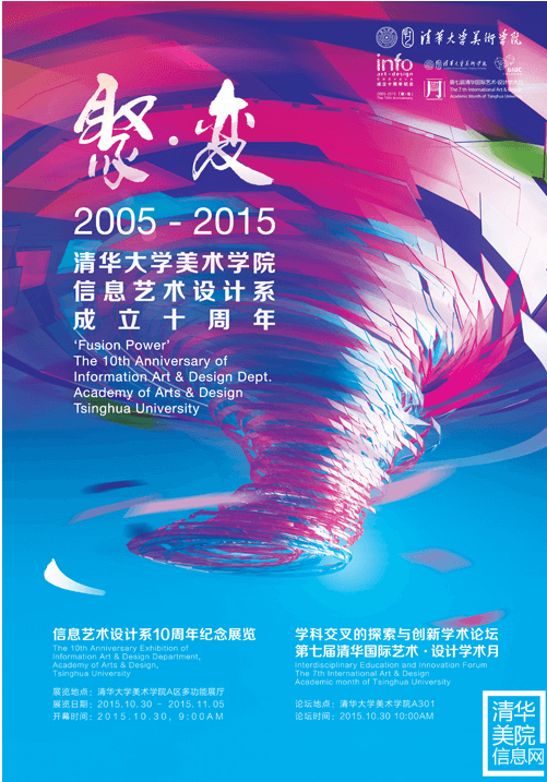 From Oct.30-31, 2015, Fusion Power—Interdisciplinary Education and Innovation, forum to celebrate the 10th anniversary of Information Art & Design Department, Academy of Arts & Design, Tsinghua University was successfully convened. The Forum focused on fields of information and interactive design, animation, image media art and etc. Scholars and experts, representatives from enterprises, alumni, students and faculty were invited to discuss the new concept and new trends of education, research, innovation and development in the design field. Meanwhile, this forum also marked the opening of the 7th International Art & Design Academic Month of Tsinghua. In the next 30 days, 23 experts and scholars from UK, USA, Germany, Italy, France, Swiss, Austria, Australia, Japan, Korea, together with students and faculty of Tsinghua will gather together. They will share their ideas and concepts in art and design areas on topics of “tradition and modern” “east and west” “art and science” “classic and fashion” through panels, seminars, lectures and workshops.