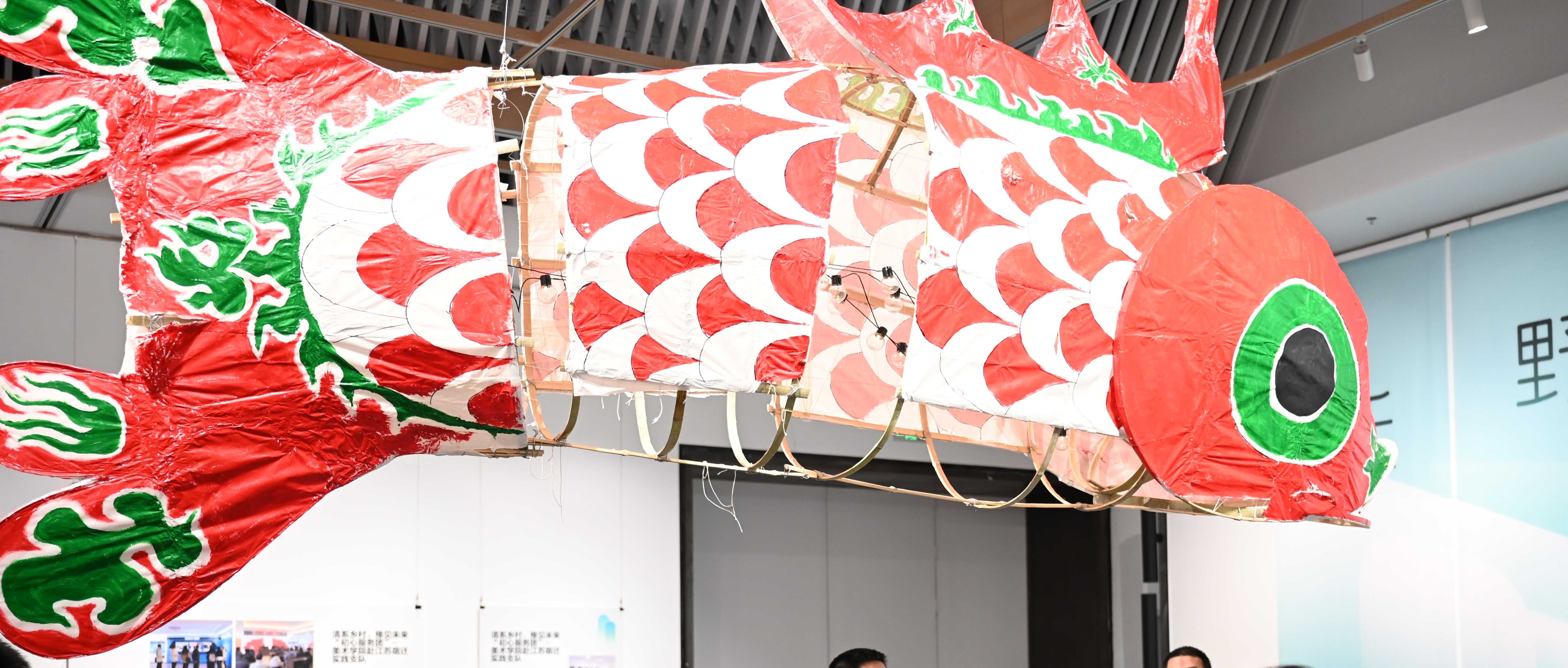 On March 15, 2024, the “Rural Aesthetic Outreach - Tsinghua University Student Social Aesthetic Practice Achievement Exhibition,” organized by the AADTHU Youth League Committee, opened in Block A Exhibition Hall of AADTHU. Poems penned by students involved in our volunteer teaching program were displayed like small flags. Apart from the brochure and documentary about the fish lanterns, the exhibition hall featured a large fish replicated by Chen Xianjie and his team using local craftsmanship.