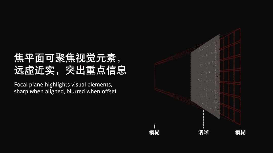 Focal Shift: Simulating the human eye’s focal shift mechanism, and leveraging the focal plane characteristic, content dynamically switches focus with changes in the viewer’s position or the passage of time, strengthening the correlation between different depth information and the reading rhythm.