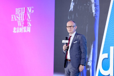 Keynote speakers included Yao Ke, Deputy Director of Beijing Municipal Commerce Bureau; Gu Weida, Beijing CPPCC Member and Chairman of Beijing Fashion Week Presidium; Yang Huasen, Deputy Party Secretary of Beichen Group; and Qin Chuan, Party Secretary of Tsinghua University’s Academy of Arts & Design.