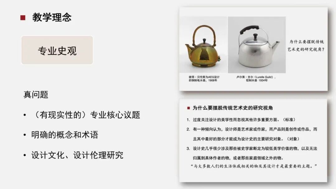 This course emphasizes the integration of history and reality, highlighting the relevance of classic case studies to contemporary design phenomena and issues. It seeks to derive experience and inspiration from history, specifically to enlighten contemporary Chinese design. Furthermore, the course employs a thematic strategy to reorganize teaching content, emphasizing problem-oriented awareness in design and the relationship between design and culture. By elevating the conceptual conflicts found in specific cases to the level of design ethics, the course establishes an effective system for value judgment, thereby fostering correct professional values among students.