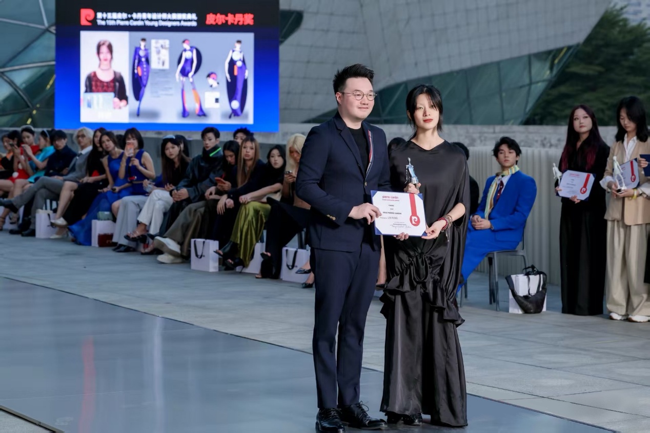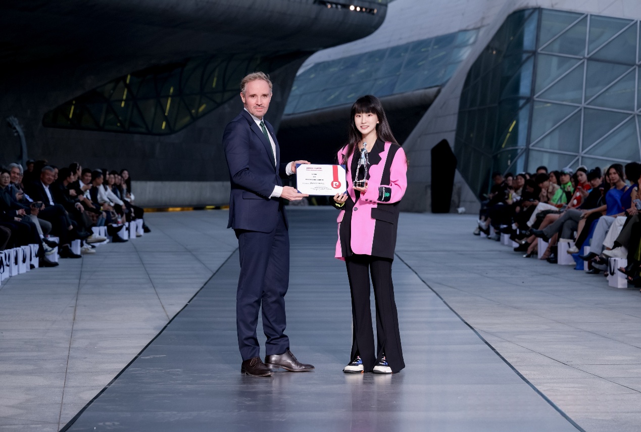 The ceremony featured high-profile dignitaries, including Sylvain Fourrière, Consul General of France in Guangzhou, who presented the award to Runner-up Zhang Xinyue. A representative for Pierre Cardin Menswear (China) presented the award to Second Runner-up Lin Rong.